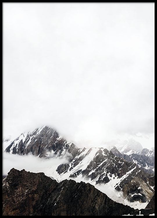 Handpicked design A lovely print with photo art, photo of high mountains with snow. A stylish photo of nature that fits well in the frame of your choice or maybe a clip. We have more posters with beautiful nature images in our shop, look in the category Photo art. A larger photo is perfect as the eye-catcher in a gallery wall or collage.