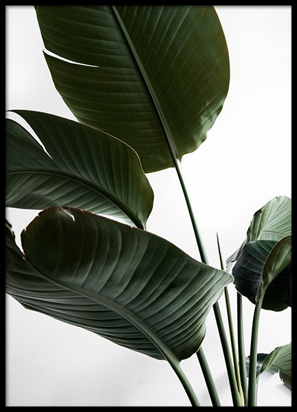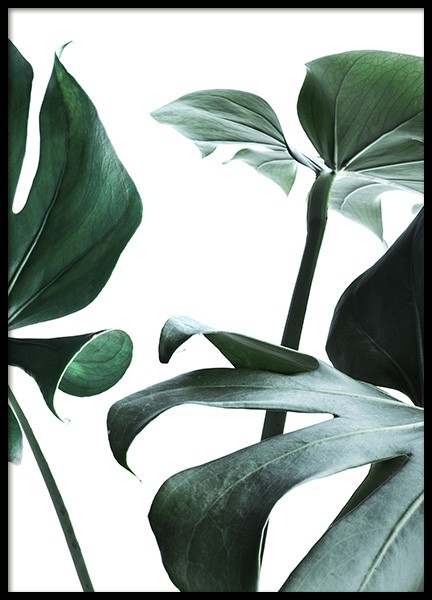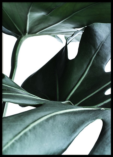 Close-up photograph of the popular plant monstera with a white background. This will match beautifully with similar green leaves posters from our sortiment.