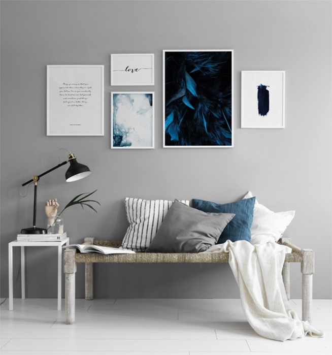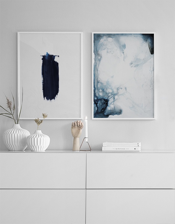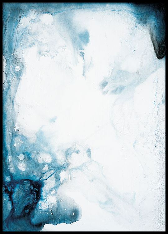Handpicked design Abstract art print of swirling blue figurations reminiscent of the ocean. Creates a sense of serenity in, for example, a bedroom. Combine with other posters and prints from our extensive range to create a vivid collage. The design was originally an acrylic painting on canvas, which means the texture of the canvas can still be seen!