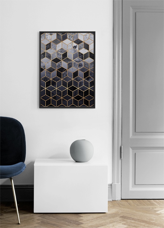 Handpicked design Print featuring a design by Elisabeth Fredriksson. Modern print featuring a stylish graphic image. This print with its geometric pattern in grey complemented by gold details is perfect to adorn a wall in your home. Hanging prints in your home is an easy way to make it more cosy and personal, while introducing art that is modern and stylish. If you need tips on how to arrange your prints, you can always check out our “Inspiration” section, where you can find tips and ideas for hanging your prints.