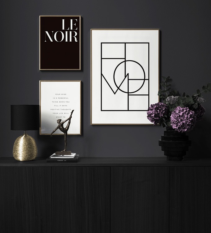 Browse among inspiring gallery walls showcasing both contrast-rich black-and-white posters and those with a softer greyscale. Trendy monochrome or black-and-white classics – we have black-and-white gallery walls to suit everyone!