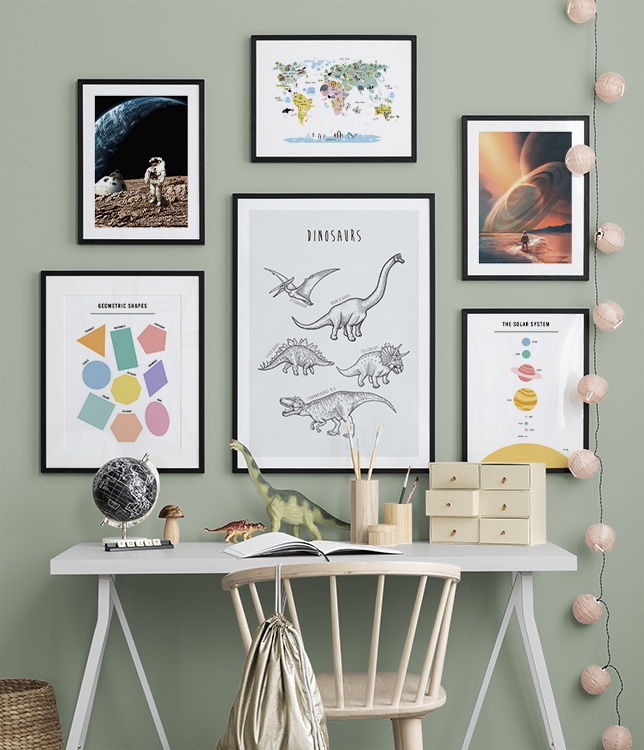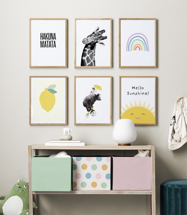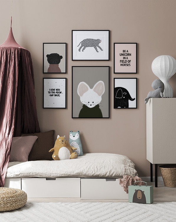 As children grow, their interests also change – to avoid having to frequently redo your child’s room, use washi tape or poster clips, which don’t leave holes or marks in the walls, when replacing posters and prints. Unleash your imagination when decorating your child’s room! To buy any of our children’s room poster combinations, just click the picture or visit our Kids Posters category to view all of our designs.