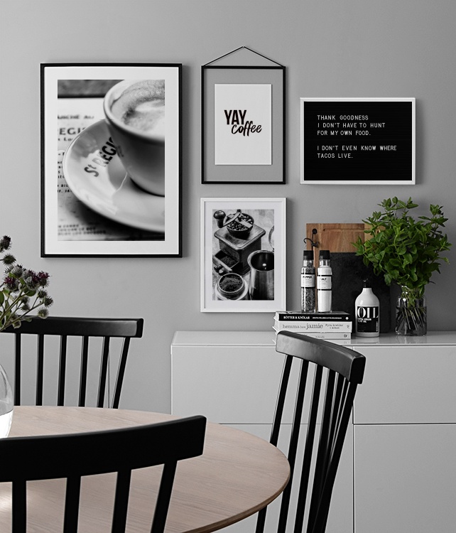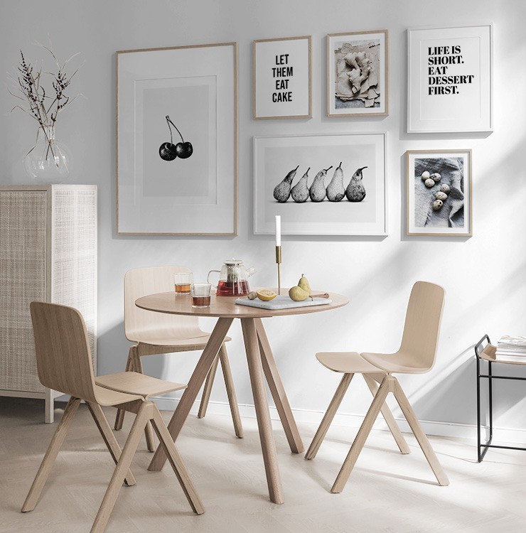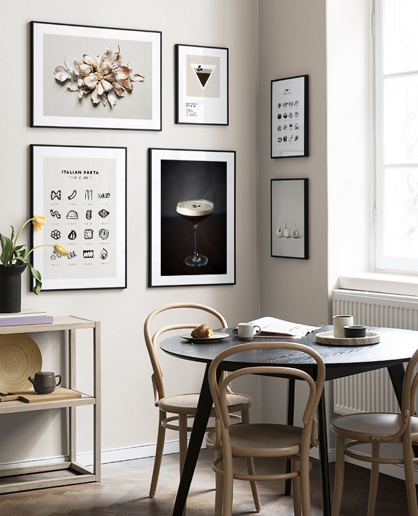 No matter if you prefer kitchen decor with a countryside feel, a stylish touch or a more rustic look, we have a kitchen posters and prints for you and your kitchen. Soft, muted colours work well in kitchens and add some warmth and cosiness. Use spices, fruit, cutting boards and recipe books that match your gallery wall to achieve a truly personal and vibrant feel. Find inspiration for your kitchen decor here!