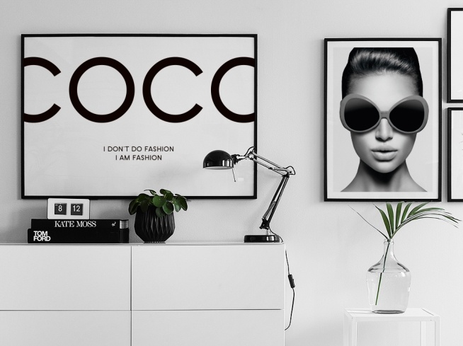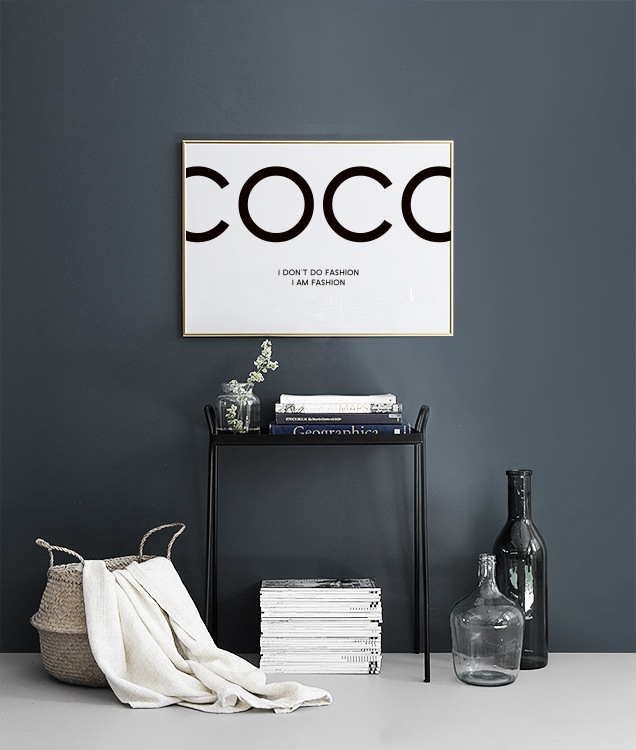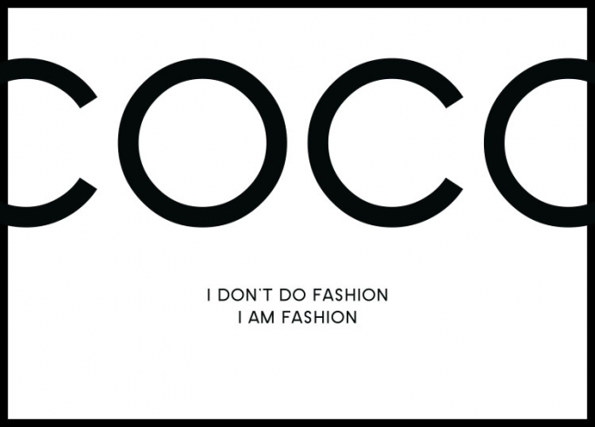 Svartvit fashion poster med ikoniskt citat från Coco Chanel.