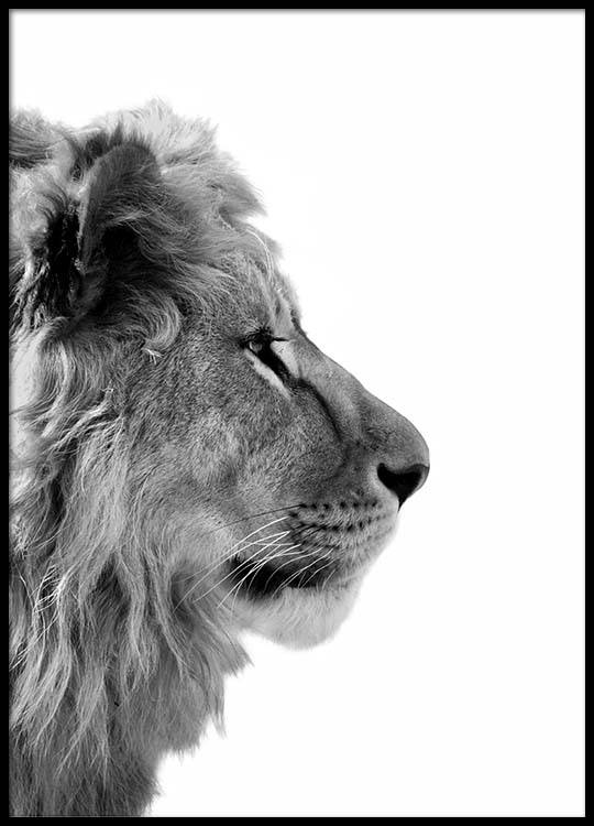 From $8.72Photograph in black and white of a lion from the side. This powerful photo is ideal for hanging on a wall that you want to accentuate in your home! Animal prints are great for when you want to add some new life to your home, and you can with ease combine your very own gallery wall with powerful designs you love.