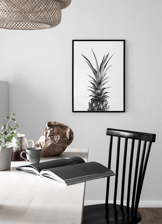 From $26.22Photograph in black and white of a pineapple on a white background. This minimalistic fruit print should be a given choice for when you're decorating your kitchen space. Add a few prints to your kitchen and it'll be a room full of inspiration, then it might just become your new favourite room!
