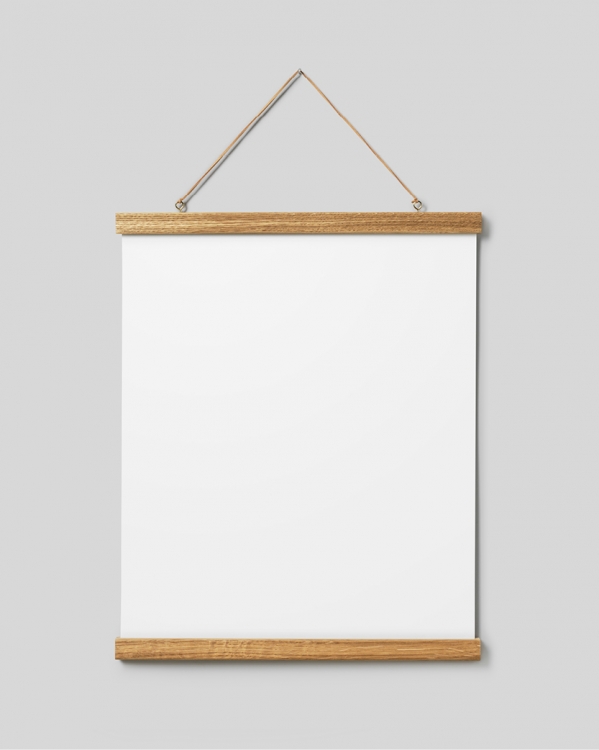 Handpicked design Oak poster hanger with magnet fastening. This poster hanger has a smart magnetic design, which holds the poster firmly without damaging it. Fitting for portrait format prints in 40x50 and landscape format prints in 30x40.