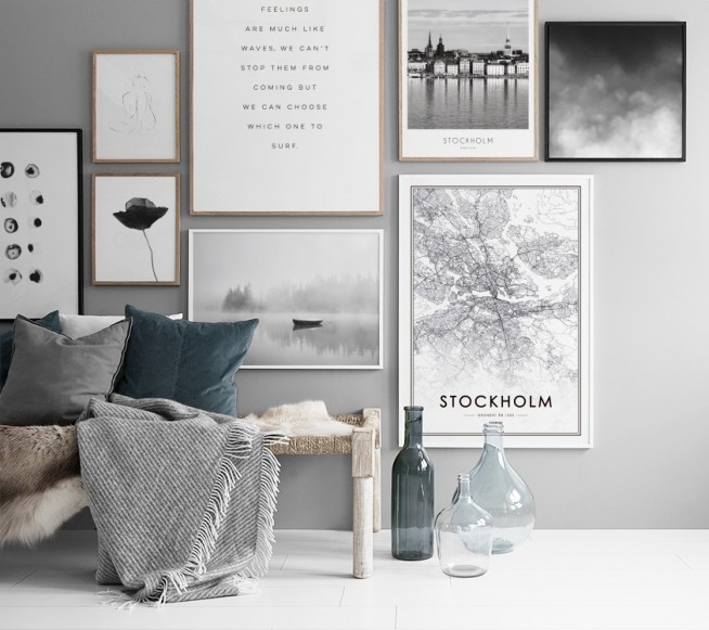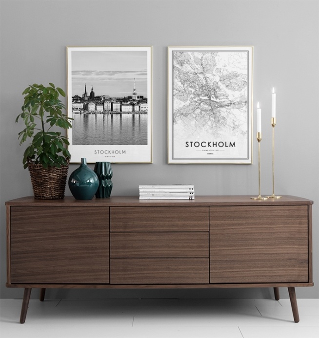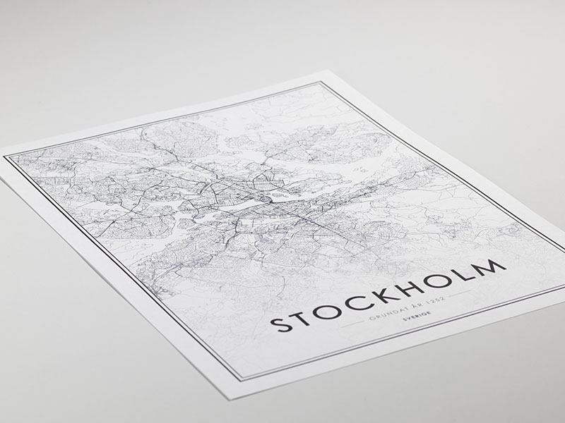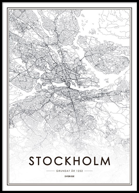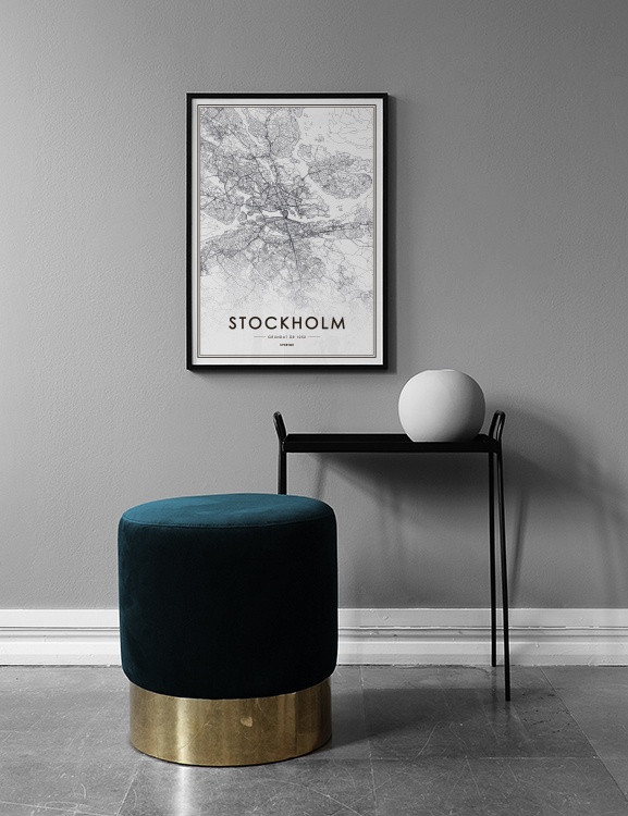 From $34.97A black-and-white poster featuring a map of Stockholm in black and white. A really sleek design that looks great in a simple black frame. A great match for the living room and easily combined with other posters in the style of your choosing. Why not a floral or typography print? If you create a gallery wall, you can combine multiple subjects in different sizes and really bring your wall to life.