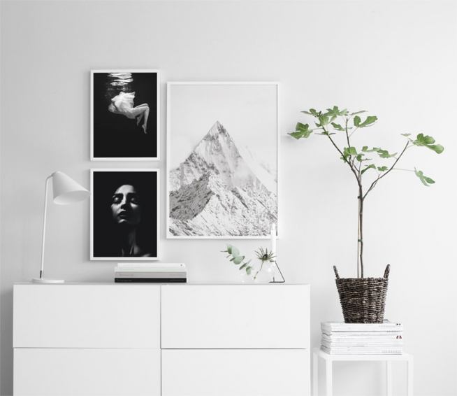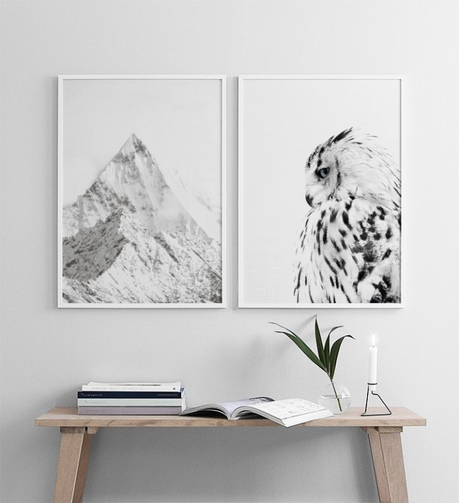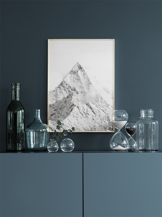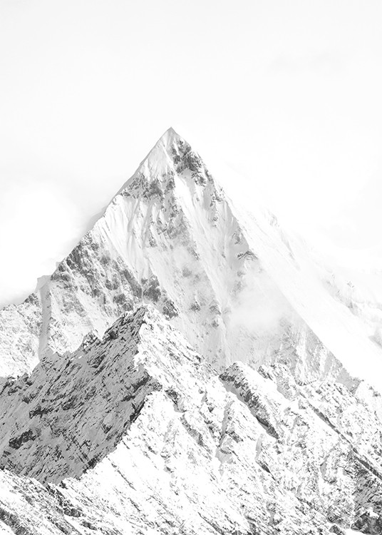 Handpicked design Poster with a black and white nature photo of beautiful snow covered mountains. A lovely photograph that fits both modern and elegant interior design and looks nice in any frame. Feel free to mix photos with e.g. typography posters for a vibrant and personal impression.