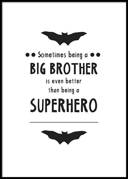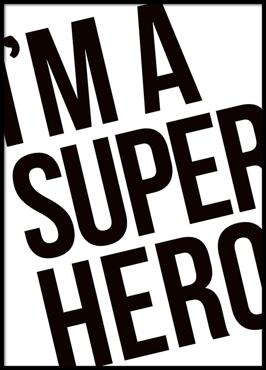 Handpicked design Black-and-white typography poster that reads 'I'm a superhero'. A simple yet lively poster perfect for children and children's rooms, and, of course, for all grown-up superheroes… It's up to you if you'd prefer it hanging on its own or as part of a gallery wall with other cheerful prints. Works well with a simple black frame or clip. Browse our Frames category.
