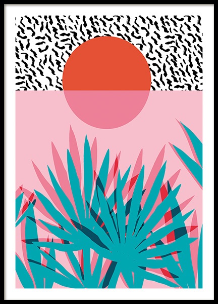 Pink Sky Palm Trees Poster