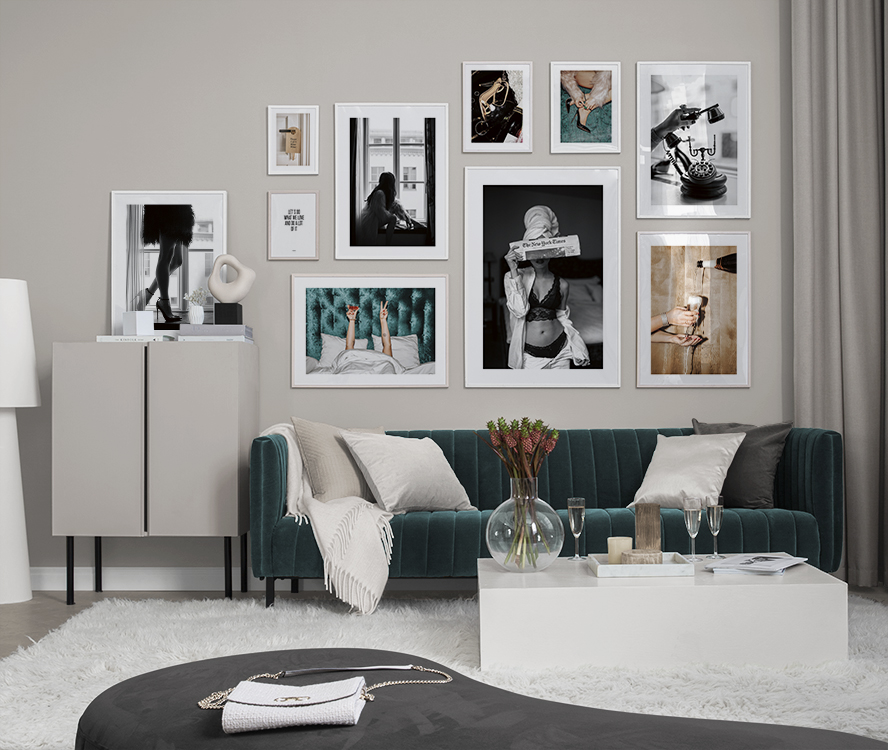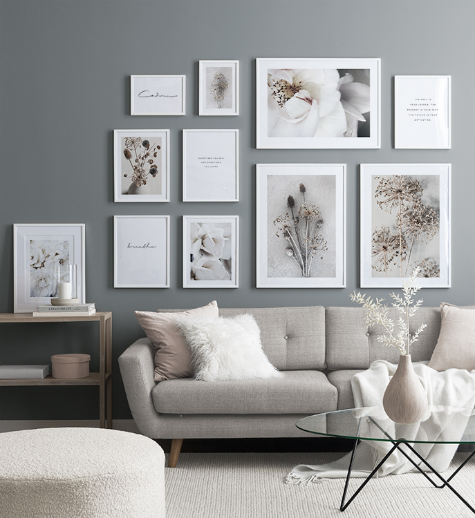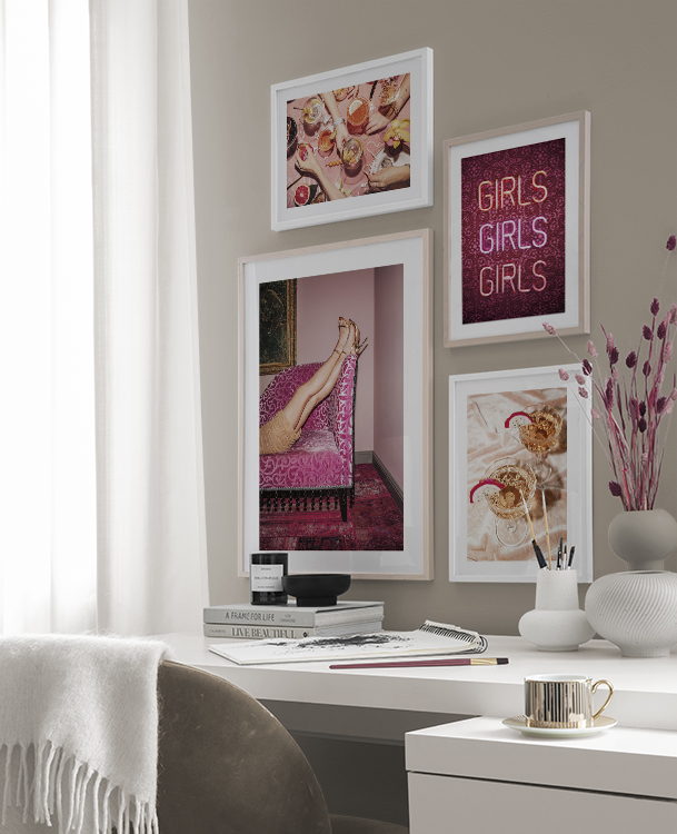 In our Inspiration section you can view different rooms and styles to find a gallery wall that’s perfect for you! Get inspiration for how you can combine different posters to create a stylish gallery wall in your home.
