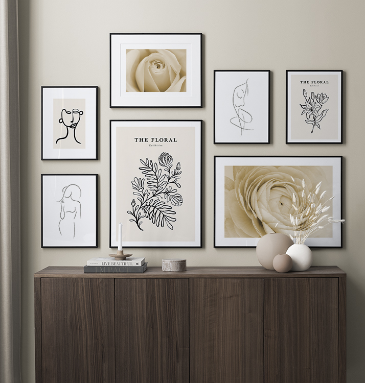 In each gallery wall you can also personalise the designs and choose the sizes, frames, mounts and other poster accessories to assemble a truly unique combination. The choices and possibilities are endless – they’re only limited by your imagination. Find pure interior design inspiration and buy a gallery wall that is YOU!