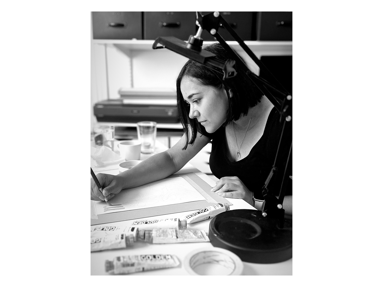 It really depends on where we’re at in our design phase. A typical day could be anything from sketching, researching, testing colours, filming Behind the Art material, creating files for printing. Every day is different. What’s constant though is that this job keeps me evolving and improving my skills and I’m very grateful for that. It’s a unique job.