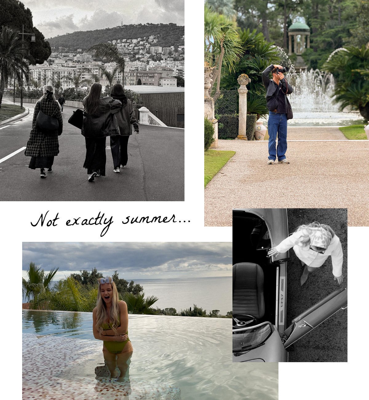 The reality at the location, however, was far from a sunny Mediterranean dream. Upon arrival, the team was met with cold temperatures, strong winds and steady rain. Most memorably for our models, the pool water barely reached 10°C.