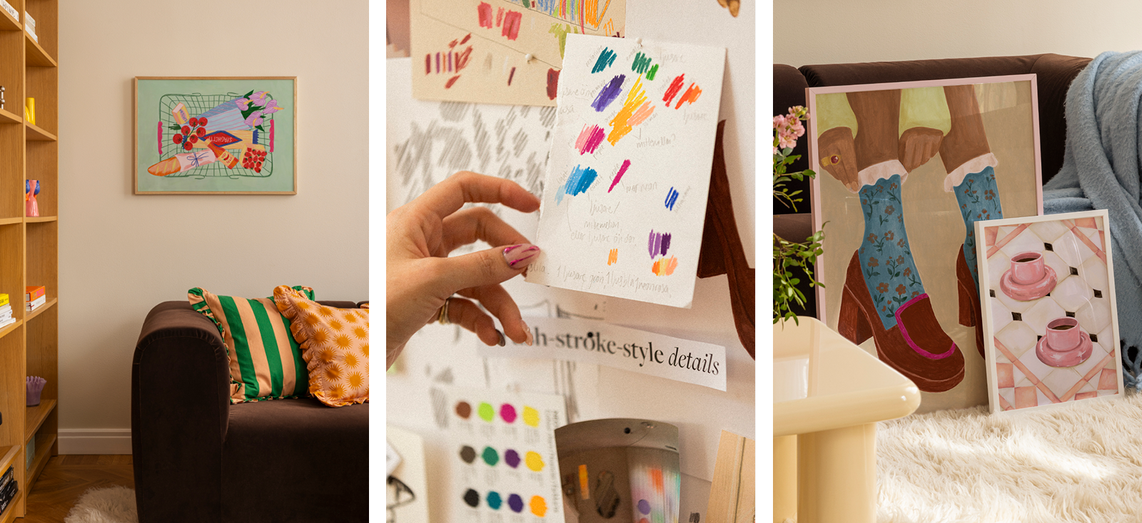 It was super collaborative. I came in with a vision: bold colour, playful shapes, and art that didn’t take itself too seriously, but still felt meaningful. The Desenio team helped bring it to life in a way that felt true to me.