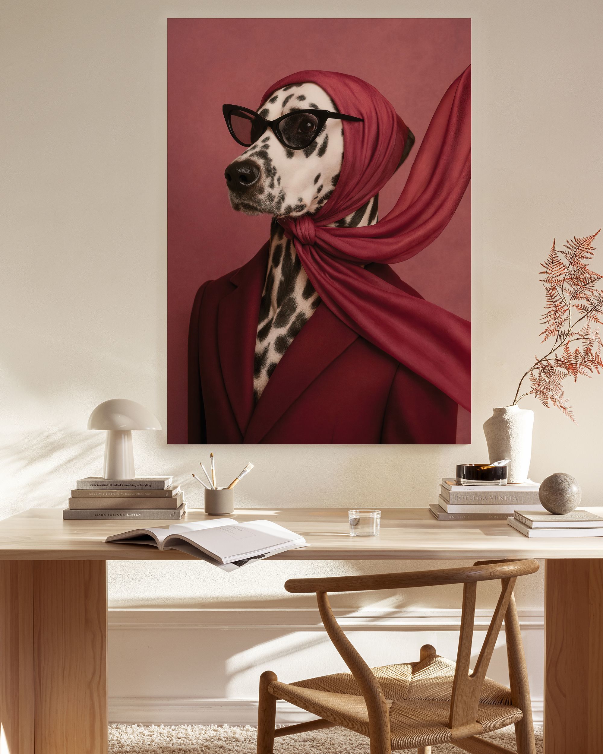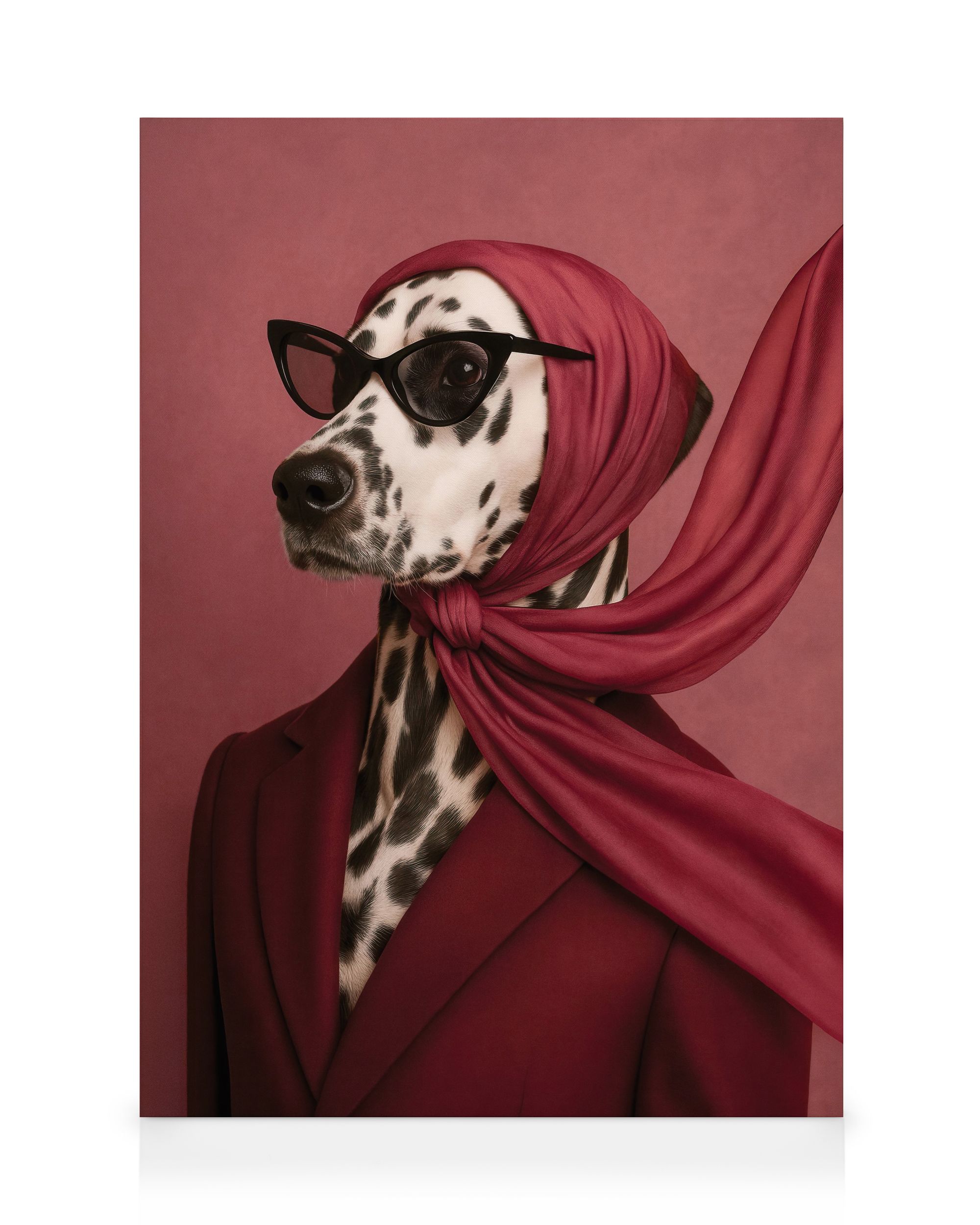 From $8.72A canvas featuring a Dalmatian dog in red and black colours. Perfect wall art for dog lovers.