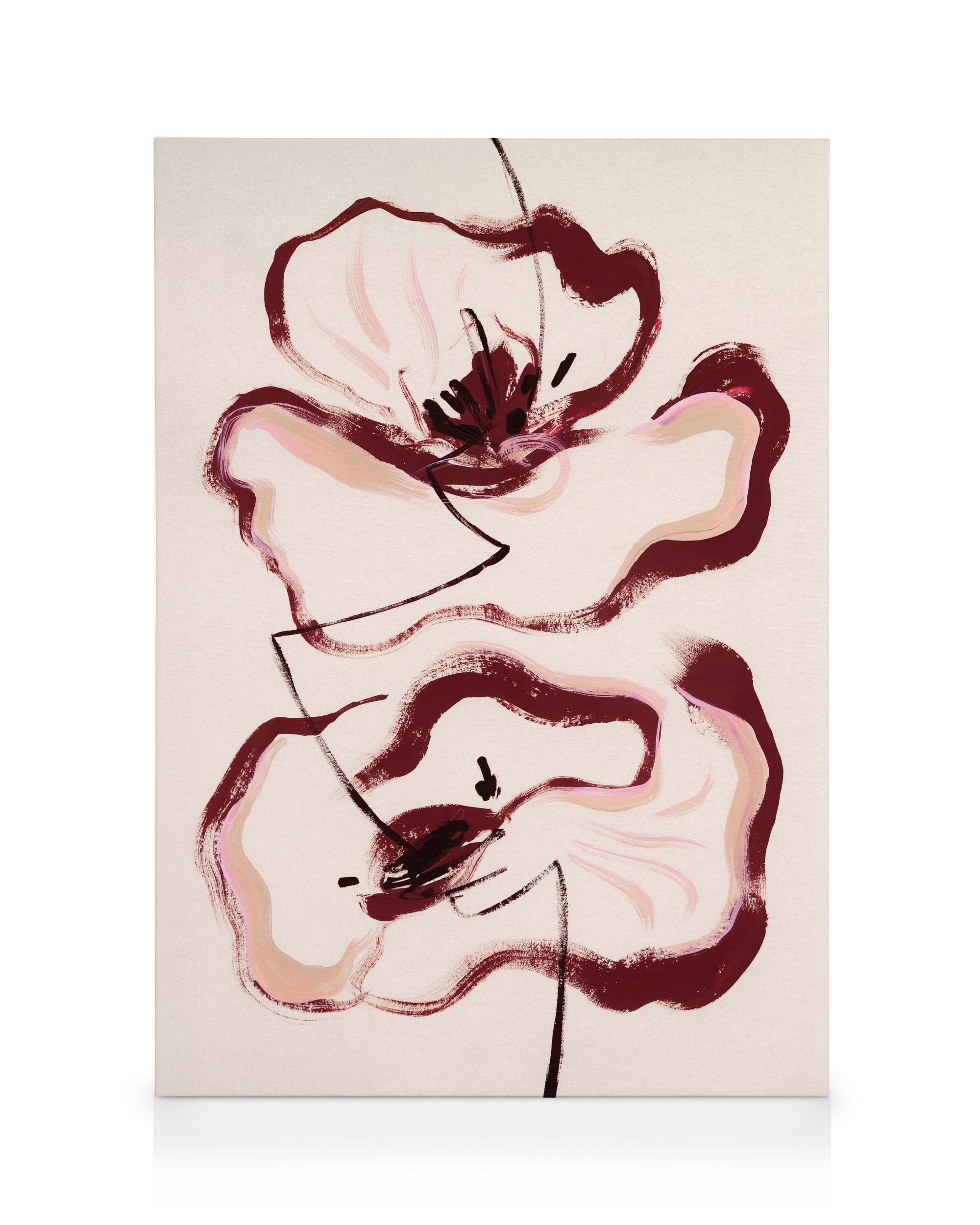 Beautiful floral canvas with red and pink lines. Perfect canvas to add colour to your home.