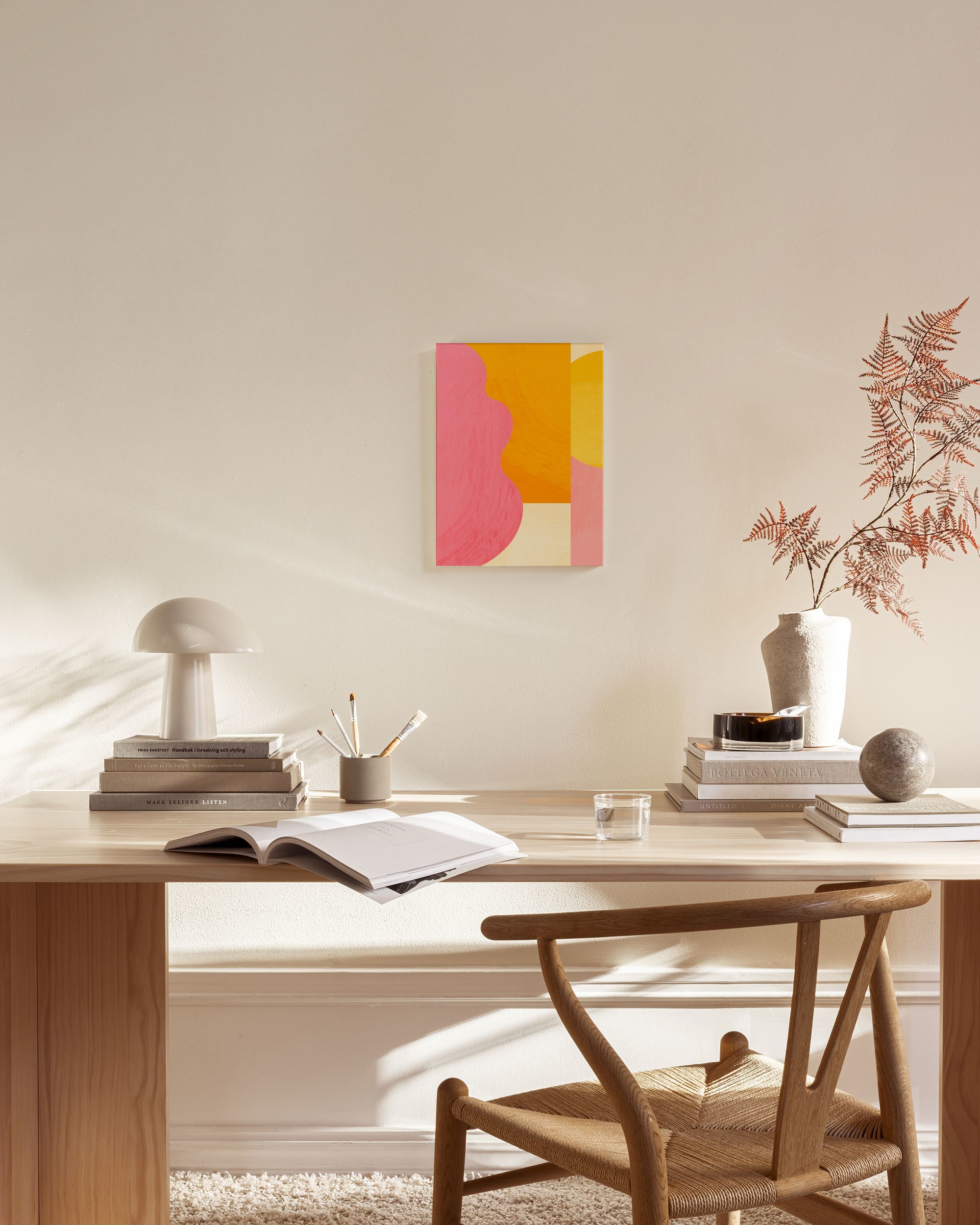 From $24.98An abstract canvas print with vibrant pink, orange, and yellow shapes on a warm beige background. Perfect wall art to brighten up your home!