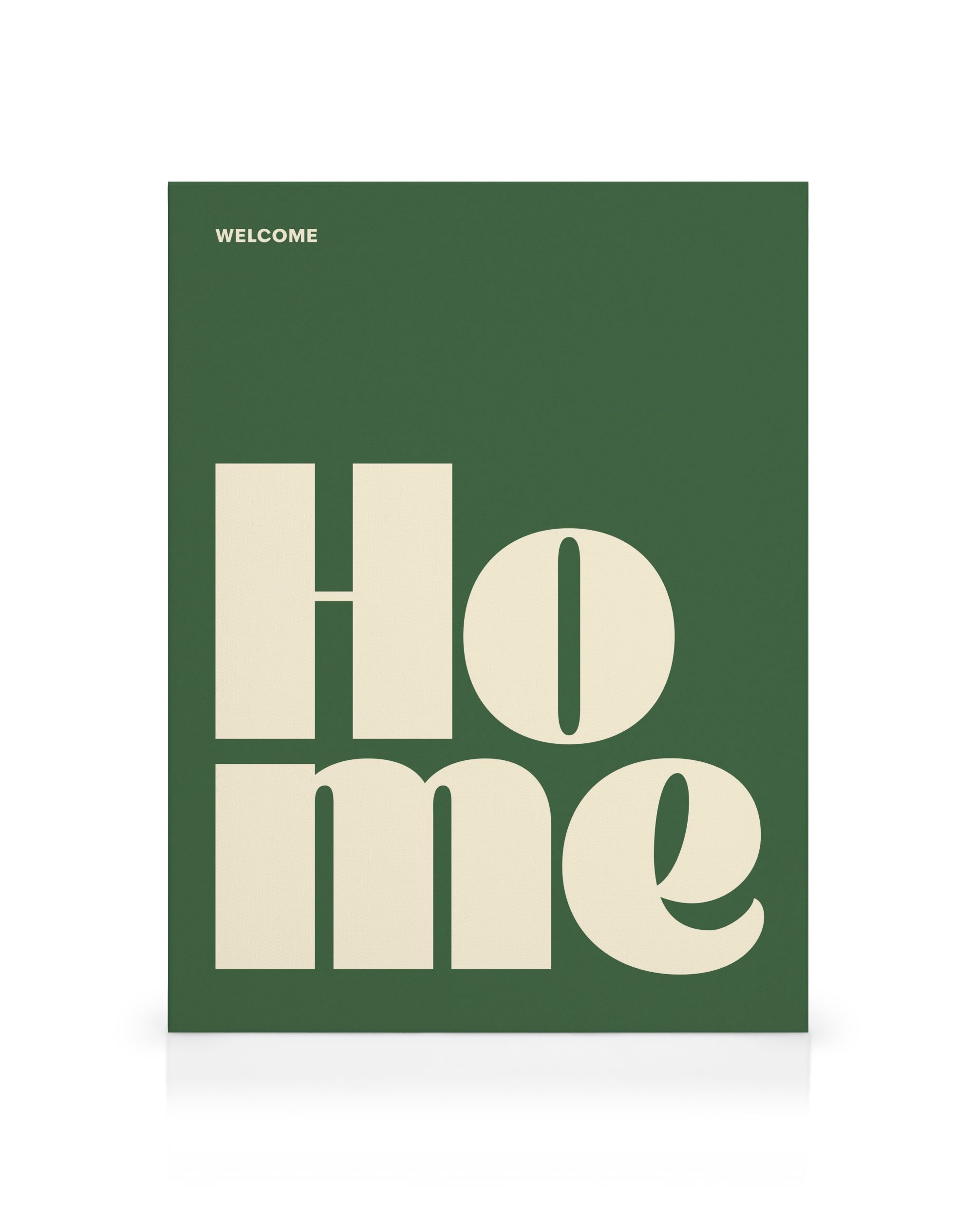 From $24.98A simple canvas print with the word "Home" in large cream letters on a green background.