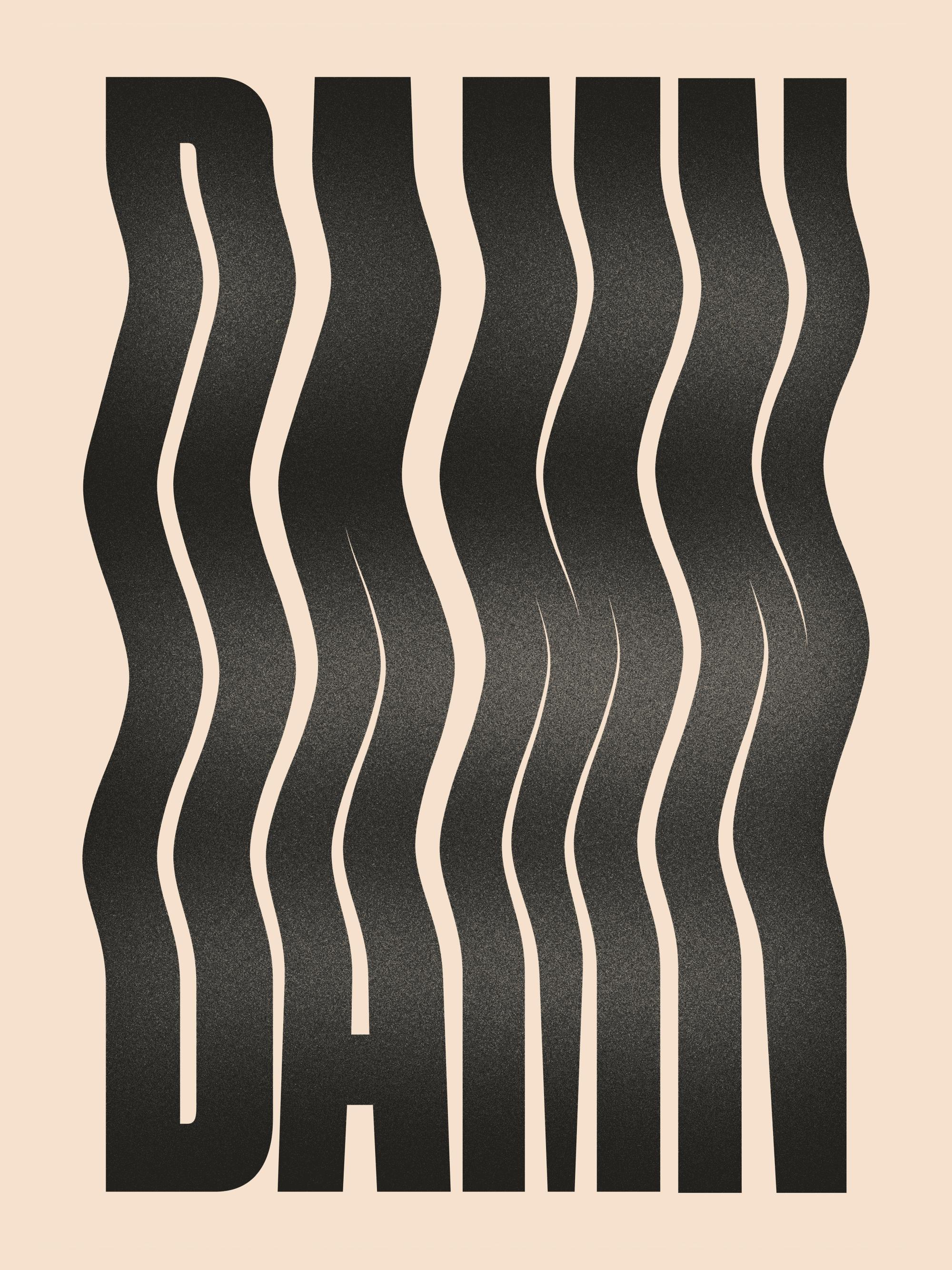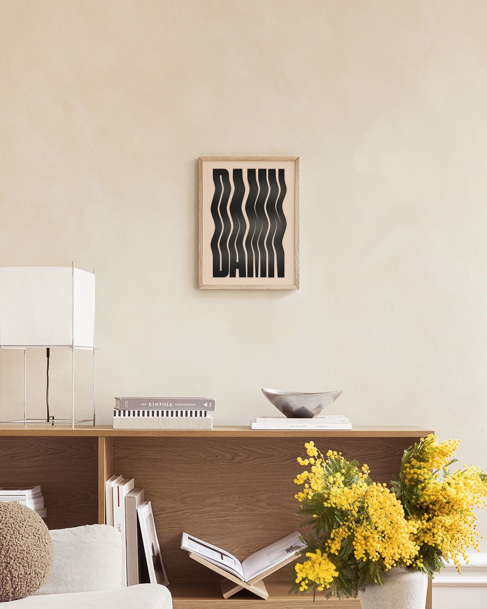 'Typography print with the word ''Damn'' in elongated, black swirling letters against a beige background. This cool print is perfect to add in a games room or teenager's room!