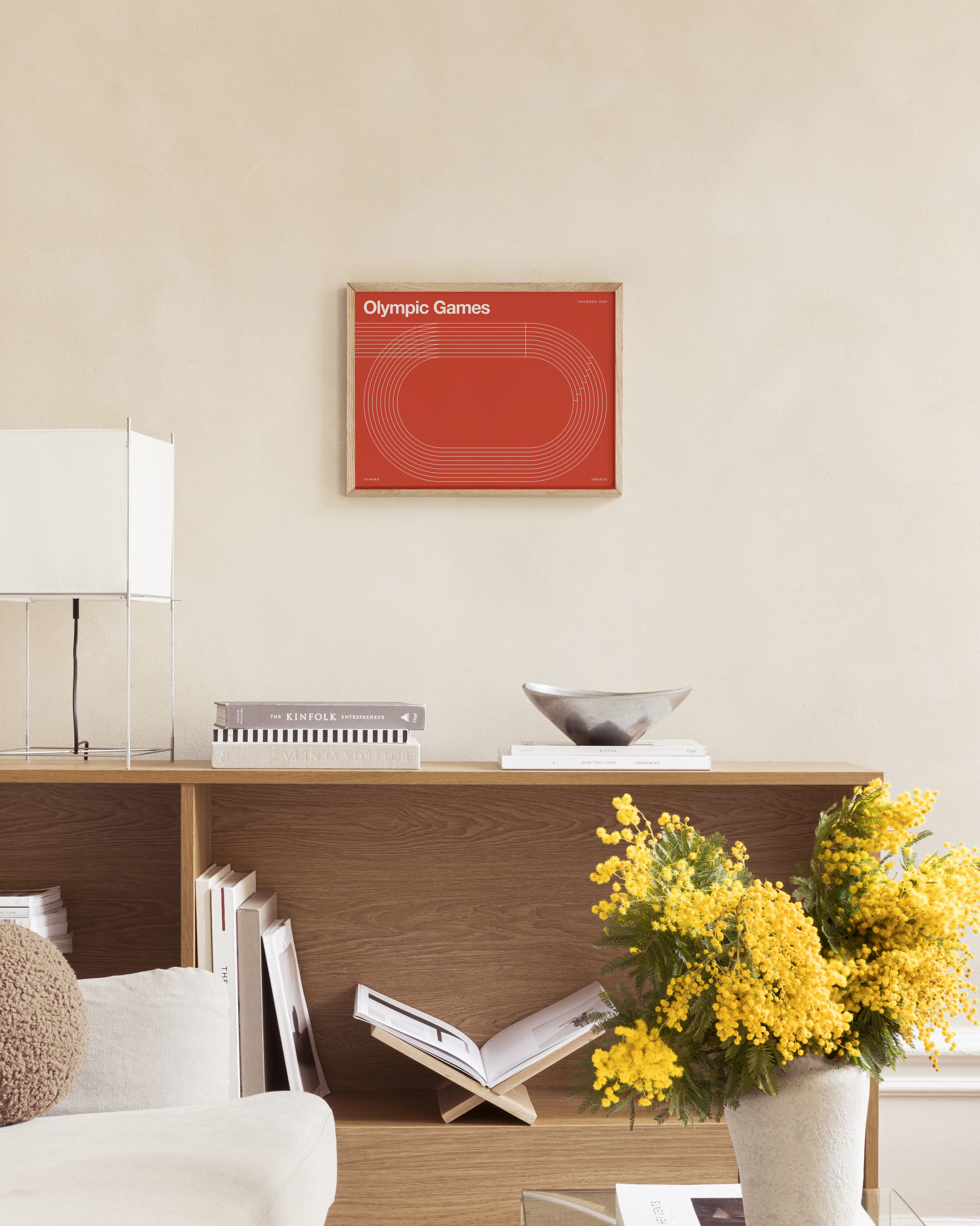 From $29.97A poster with a red background and white text celebrating the Olympic Games. Features "Olympic Games" in large letters and an oval track design.