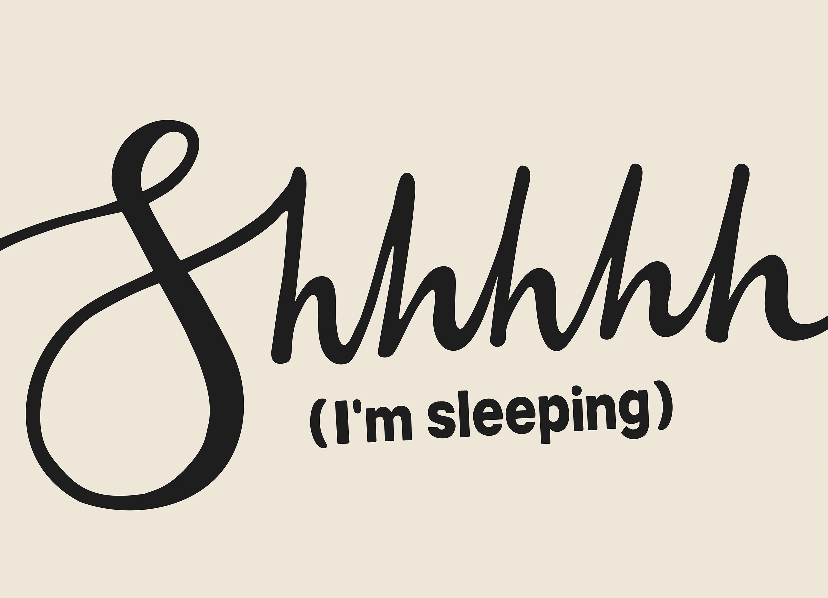 From $29.97A poster with the word "Shhhhh" in black cursive text on a beige background, with the words "I'm sleeping" written underneath.